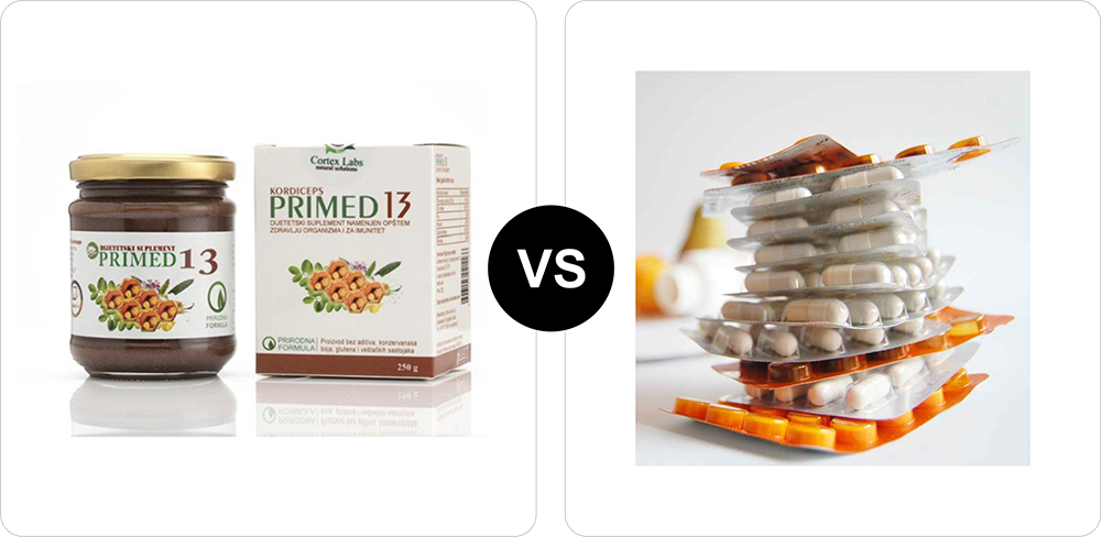 Primed 13 Forte je kombinacija naše ljubavi prema medu i medicinskih pečuraka koje potpuno prirodno podstiču jači imunitet, pružajući povišenu i izbalansiranu energiju u toku dana. Prijatnog ukusa i bez veštačkih sastojaka